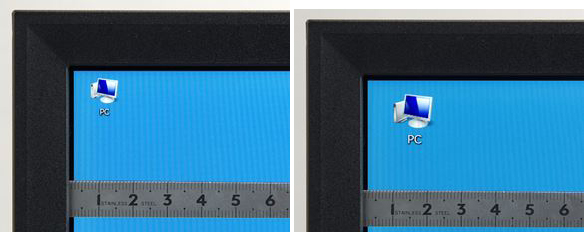 这是在相同尺寸的屏幕上UHD 4K(左)和全高清(右)显示的差别。图标照片在距离屏幕基本相同的距离上拍摄。对于UHD 4K(3840 x 2160像素),显示被放大200%,对于全高清(1920 x 1080像素),图标以相同的放大倍率显示。图标的大小基本相同,但您可以看到,UHD 4K显示的图标清晰度更高。