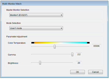![]() 选择主显示器和显示模式,然后调整色温和伽玛值以及亮度,统一所有显示器上所显示的色彩。 |