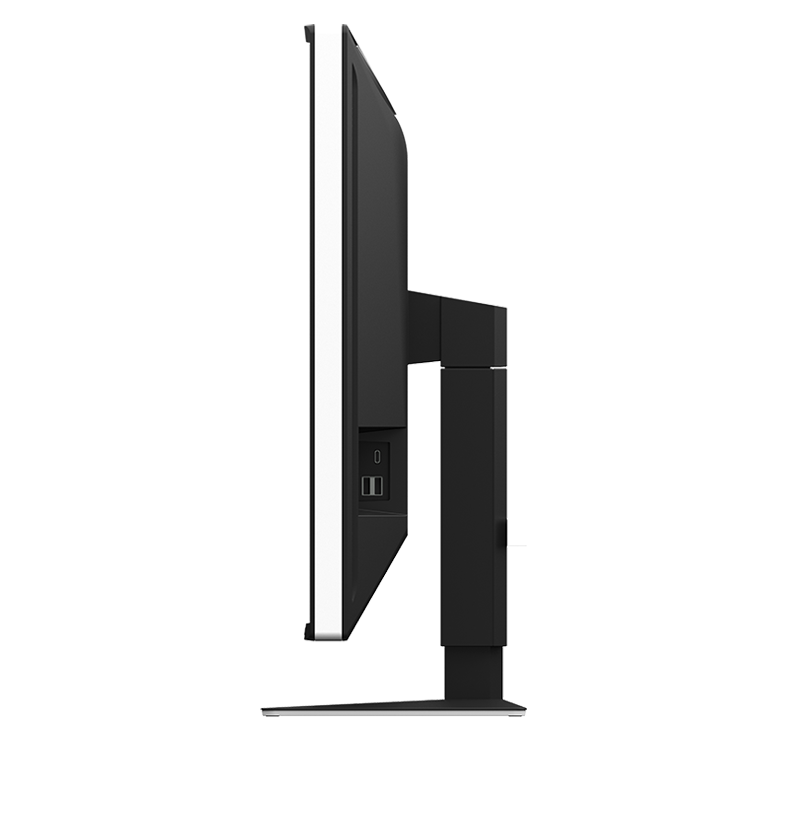 显示器的黑色前边框非常适合在暗室内观看屏幕,从而更易于专注于影像,同时显示器侧面独创的白色条纹呈现清新、整洁的外观美感。